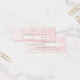Un élégant rappel de rendez-vous carte de visite mince avec une police de script de couleur or classique sur un simple arrière - plan de style aquarelle rose. Personnalisez cette carte de rappel minimaliste rose et or en ajoutant le nom de votre salon de coiffure et de beauté. Ce modèle est fait pour écrire au nom de la coiffeuse programmée ainsi que la date et l'heure du rendez-vous.
