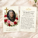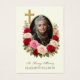 Remember your loved ones in prayer with this beautiful religious image of a gold crucifix with red and pink roses. All text and fonts can be modified.
