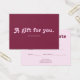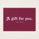 Give the perfect present with a gift card that's as stylish as it is thoughtful. This card features a warm and sophisticated color palette, blending soft blush pink with rich, earthy brown. The front makes a charming statement with the quote "A gift for you," presented in "Tango," a fun and decorative retro font full of personality. On the back, you'll find a clean, simple layout with space for "To" and "From," plus any other details you need. It's the ideal way to give a gift they're sure to love, all wrapped in one beautifully designed package.
