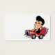 Caricature d'un rodder chaud des années cinquante dans une veste en cuir et pompadour coupe cheveux. Customisez n'importe quel produit pour un anniversaire ou un anniversaire rétro. Parfait pour les amateurs de voitures classiques ou les enfants des années cinquante.