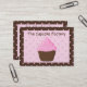 Un petit gâteau de chocolat avec le givrage pelucheux rose est à un cadre brun chocolat avec le pois rose, et au centre rose-clair de point de polka. Perfectionnez si vous possèdent une boulangerie, il y a d'abondance de l'espace des textes pour la customiser avec tout que vous avez besoin !