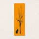 Ce signet présente un chat noir sous un arbre noir nu qui vous regarde directement contre un brillant arrière - plan orange doré. L'image est répétée à l'arrière.