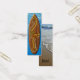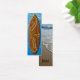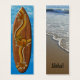 Inspiré par les shorts de plage et les chemises aloha des années soixante, ce motif aux couleurs audacieuses combine des bandes de compétition, des hibiscus et une île de palmiers. La motif se jette dans le bois naturel de la planche de surf. Customisez le signet avec votre propre dicton ou utilisez le nôtre. Le dos est une photo originale d'une belle plage tropicale.