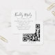 Vous n'avez pas à vous inquiéter de la disparition des retours RSVP dans le courrier lorsque vous invitation des invités à RSVP en ligne à la place. Créez un code QR qui envoie les invités directement à votre site Web mariage, puis ajoutez toutes les instructions importantes au recto de la carte. **VEUILLEZ LIRE AVANT DE COMMANDER** Si vous modifiez la forme ou la taille ou choisissez un autre produit et que le design est recadré de quelque façon que ce soit ou ne semble pas sur la page, vous devrez utiliser le service de design en direct pour que quelqu'un vous adapte la disposition, sauf si vous êtes à l'aise de le faire vous-même. Votre commande va directement aux imprimantes afin que ce que vous voyez à l'écran soit ce qui vous sera imprimé et expédié. Dans cet esprit, veuillez également triple-vérifier pour toute erreur d'orthographe ou information incorrecte avant de passer votre commande.