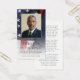 Keep the memory of a loved one close with this patriotic personalized prayer card featuring a cherished photo of them framed in faux metallic gold foil, the sentiment FOREVER IN OUR HEARTS, name and dates overlaid on an image of an American flag on the front and your custom text, quote, bible verse or poem on the back (shown with a patriotic poem). With its simple yet elegant classic design and modern script typography, it makes a meaningful keepsake to share at a funeral, memorial service or Celebration of Life and offers comfort and a lasting tribute for family and friends. Its small and portable size of 3.5x2" (wallet-sized) makes it convenient for loved ones to carry it with them as a reminder of your loved one’s life and spirit. Personalization makes each card unique.