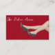 Cartes de visite tendance pour l'industrie de la mode conçu avec un modèle de mode portant des chaussures à talon élevé comme une image puissante sur le devant et vos coordonnées d'affaires sur le revers de la page.