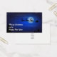 Joyeux Noël et une Bonne Année. L'image sur le devant est une illustration festive de noël. Père Noël dans son traîneau et son renne volant à travers le ciel bleu foncé. Une lune éclatante illumine le ciel et on peut voir des étoiles scintillantes tout autour.