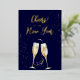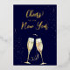 À la bonne année Cartes de vœux de fête navale de feuilles d'or véritable en Champagne... Célébrez la nouvelle année avec style en envoyant des cartes de vœux faites de feuilles d'or véritable. Le texte sur le devant de la carte est entièrement en feuilles d'or, avec des verres à champagne dorés assortis pour souligner votre vœu "À la bonne année !". Au dos de la carte, en texte doré (encre d'imprimante, pas de feuille) figure un message sincère que vous pouvez conserver tel quel ou modifier avec votre propre formulation... suivi de votre signature, également en or. Tout le texte peut être révisé à l'aide du modèle de personnalisation. La couleur de fond des deux côtés de la carte est un élégant bleu marine.
