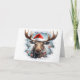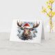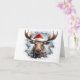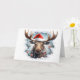 Donnez à votre carte de vœux de Noël une touche de la vie sauvage avec ce portrait d'animaux de Noël mignon mettant en vedette un orignal de Noël mignon avec un chapeau de Père Noël sur le devant, un fond de flocons de neige bleus à l'intérieur et un doux message "Joyeux Noël" dans une police enneigée à l'intérieur. Carte de vœux parfaite pour les amoureux des animaux et de la faune ! Disponible uniquement chez Yips N' Howls.