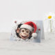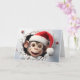 Donnez à vos vœux de Noël une touche de la vie sauvage avec ce portrait d'animaux de Noël mignons mettant en vedette un bébé singe mignon avec un chapeau de Père Noël sur le devant, un fond de flocons de neige bleus à l'intérieur et un doux message "Joyeux Noël" dans une police enneigée à l'intérieur. Carte de vœux parfaite pour les amoureux des animaux et de la faune ! Uniquement chez Yips N' Howls.