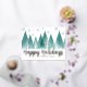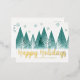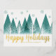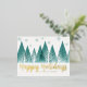 Une rangée élégante de sapins d'hiver et de flocons de neige au-dessus de votre texte personnalisé 'Joyeuses Fêtes' et du nom de votre entreprise en superbe feuille d'or sous la forêt verte enneigée. Une carte de vœux d'entreprise moderne avec votre message de Noël personnalisé au verso de la part de votre entreprise.