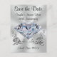 Cartes de Save the Date personnalisées et magnifiques pour un 60ème anniversaire de mariage avec diamant, PERSONNALISEES en saisissant du texte dans les 5 modèles de boîtes de texte sur votre droite. Cliquez sur le petit mot bleu "Plus" sous les boîtes de texte pour voir les 5 modèles. Saisissez VOTRE TEXTE ou supprimez tout ou partie du texte. Consultez les suggestions pour savoir quoi remplir, mais c'est personnalisé juste pour vous.
