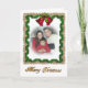 Image et illustration composition de beaux rubans damassés verts, saints et cloches et filigree or ornemental avec texte or, Joyeux Noël. Cette belle et traditionnelle carte de voeux photo de vacances est adaptée pour encadrer après les vacances. L'effet de fondu est intégré dans la conception, donc juste télécharger votre image, customiser le salut si vous voulez, ajouter votre nom et vous avez terminé.