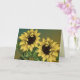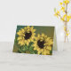 J'ai pris une seule image de tournesol d'une vieille carte de voeux, je l'ai nettoyée juste assez pour conserver le look vintage et je l'ai transformée en aquarelle informatisée. L'image de ces cartes a été placée contre un dégradé arrière - plan pour s'harmoniser avec les fleurs. L'intérieur de la carte est jaune pâle - vous pouvez changer cela en une autre couleur si vous préférez en allant à Modifier et en sélectionnant Arrière - plan. Je n'ai pas mis de texte sur la carte pour qu'elle soit appropriée pour n'importe quelle occasion - anniversaire, sympathie, merci ou juste un bonjour simple.