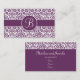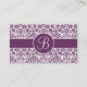 Remettez ces cartes-cadeaux mariages à votre famille et à vos amis pour leur indiquer où vous êtes inscrit. Ces cartes présentent un motif damassé blanc et violet prune avec un monogramme.