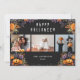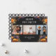 Belles cartes d'Halloween en buffle noir et blanc, avec des lanternes jack-o', des fleurs violettes et orange sur le devant et un motif de buffle noir et blanc à l'arrière. Personnalisez facilement ces 3 cartes photo Halloween avec vos photos, le nom de famille et l'année ou autre texte.