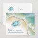 Accueillez vos proches dans votre nouvelle maison avec nos superbes Cartes d'Invitation pour une Fête de Pendaison de Crémaillère, conçues exclusivement par Victoria Grigaliunas de Do Tell A Belle. Dotées d'une magnifique illustration de tortue marine à l'aquarelle dans des nuances de bleu turquoise et de sarcelle, ces invitations au style de carte postale capturent parfaitement l'essence de la vie côtière et l'ambiance estivale.
