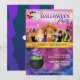 Cartes d'invitation amusantes pour Halloween avec un slogan humoristique accrocheur. Comprend une sorcière de fête, une momie, un vampire, un squelette, une mariée monstre et Frankenstein. Pour une fête monstrueuse effrayante qui sera sûre d'être un succès ! Chaque police de caractères est personnalisable ! Une mystérieuse maison hantée à l'arrière-plan avec une pleine lune magique. Des chauves-souris volant devant la lune. De beaux ciels roses et violets. Ces cartes magiques seront sûres d'impressionner chaque goule, gobelin et sorcière que vous inviterez !