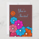 De brillantes fleurs tropicales se détachent sur un fond bleu foncé sur cette invitation sur le thème hawaïen. Utilisez ces invitations pour un luau, une soirée tiki, une maison ouverte, une fête d'anniversaire, une douche de mariée, un anniversaire, une réception, une fête de fin d'études, une fête de retraite, etc... Les dessins sont issus d'illustrations originales.