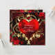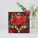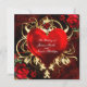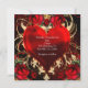 Cartes d'invitation cœur floral ornemental noir rouge or. Personnalisez pour tout événement.