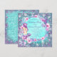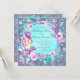 Cartes d'invitation pour une fête d'anniversaire sirène sous l'océan avec une jolie sirène violette sur un magnifique fond violet et bleu sarcelle sous l'océan avec des coquillages, des hippocampes, des fleurs et du corail. Vous pouvez facilement personnaliser ces jolies invitations pour une fête d'anniversaire sous l'océan violet et bleu sarcelle pour votre événement en ajoutant simplement les détails de votre événement dans le style de police et la formulation de votre choix. Il s'agit d'un design imprimé sans véritable paillettes, bijoux, etc.