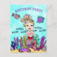 Un moyen mignon et abordable d'inviter des amis à la fête d'anniversaire d'une petite fille. Une invitation d'anniversaire de fille colorée avec une sirène fantaisiste de style art plié dessiné à la main et ses amis sous la mer.