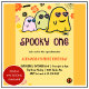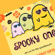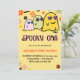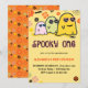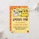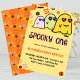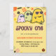 Cartes d'invitation d'anniversaire 1ère année Halloween spooky one : Conception de carte d'invitation d'anniversaire 1ère année Halloween avec fantôme mignon, thème Halloween, groovy, années soixante-dix, 70s, floral.