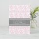 Invitations de douche nuptiale dans élégant rose pastel clair, gris et blanc classique floral damassé vintage motif, chic et féminin, personnalisable avec vos détails de douche. Disponible également dans les cartes de remerciements et les invitations pour la fête nuptiale.
