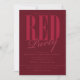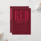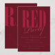 Cartes d'invitation de fête rouge radiant. Les invitations de fête modernes et monochromes rouges présentent un texte élégant avec un aspect rouge sur rouge. C'est un excellent choix d'invitation pour les fêtes d'anniversaire, les enterrements de vie de jeune fille, les anniversaires de 16 ans, les fêtes d'adultes et plus encore ! Des fournitures et décorations de fête supplémentaires sont disponibles sur Metro-Event.com et Metro-Events sur Zazzle.