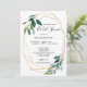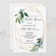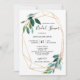 Nos cartes d'invitation de fiançailles à la verdure à l'aquarelle affichent un beau cadre géométrique accompagné de délicates feuilles vertes et de polices charmantes. Le verso présente des confettis dorés.