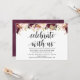 Vous organisez un brunch de célébration avec les jeunes mariés le lendemain du mariage ? Invitez vos invités avec cette carte d'invitation au brunch après-mariage au thème floral rustique en bordeaux. Ajoutez vos détails de brunch dans une police / lettrage noir assorti.