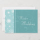 Invitations de mariage hivernal dans les classiques turquoise et blanche avec un design élégant de flocon de neige et tourbillon, personnalisable avec vos détails mariages. Disponible en timbres de vacances d'hiver assortis, enveloppes, étiquettes et cartes. Parfait pour un mariage de Noël ou de décembre.