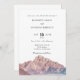 Cette invitation de mariage présente une montagne en aquarelle avec un fond coloré pour paraître élégante et minimaliste. C'est l'invitation parfaite pour une célébration de mariage en montagne au printemps ou en automne.