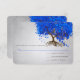 Faire-part de mariage Arbre aux feuilles en forme de cœur bleu royal et argent Luxe rustique - Arbre de l'amour bleu royal magique et fantaisiste avec feuilles en forme de cœur sur papier métallisé argenté taché de thé et quelques jolis motifs tourbillonnants pour mettre en valeur les racines de l'amour sur ce faire-part de mariage unique de forêt sauvage...