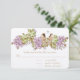 Veri Peri avec une touche de carte de réponse pour RSVP pour un mariage Love Bird avec du Plum Lavande Lilas Rose. Conception lavande et or bronzé, lettrage script d'informations violettes et volutes de bronze sur une belle branche de lilas recouverte de fleurs douces de printemps avec deux oiseaux romantiques amoureusement assis l'un à côté de l'autre. Mariages vintage avec oiseaux et occasions spéciales, invitations de mariage rustiques vintage avec oiseaux pour mariages en forêt. Deux oiseaux amoureux assis sur une branche de lilas avec des fleurs violettes. Parfait pour ce mariage unique romantique et fantaisiste. Ce n'est pas comme les autres invitations que l'on trouve ailleurs. Douceur rustique et pleine de fantaisie folklorique.