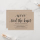 Cette carte d'invitation sur le thème du mariage en fuite kraft rustique est parfaite pour votre réception de mariage et votre fête de célébration post-mariage. Ajoutez vos détails dans une police / lettrage noir assorti.