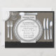 Joli modèle de carte d'invitation pour le dîner de répétition de mariage avec une nappe en damassé noir élégante et une assiette en porcelaine argentée. Vous pouvez facilement personnaliser cette invitation de dîner de répétition élégante avec les détails de votre événement dans le style de police, la couleur et la formulation de votre choix.