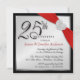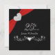 Cartes d'invitation élégantes en argent et noir pour les 25 ans d'anniversaire de mariage avec ruban rouge simulé, cœur en strass argenté -- Personnalisez le nom, la date et les détails pour cette occasion heureuse. **REMARQUE : Format adapté pour les cartes d'invitation CARrées. Timbre assorti, enveloppes et cartes de remerciement disponibles. Cartes de réponse RSVP assorties ci-dessous :