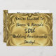 Cartes postales d'invitation élégantes "Fête du 50e anniversaire" avec un beau décor doré de style vintage et texte noir. Facile à personnaliser avec toutes les informations nécessaires au verso ou simplement supprimer le texte exemple pour écrire à la main plus tard. Ajoutez les noms du couple heureux sur le recto pour personnaliser. Vous pouvez même changer le texte du recto pour une autre occasion spéciale, comme d'autres anniversaires, mariages, départs à la retraite ou l'invitation pour les 50 ans. Élégant et chic, d'apparence luxueuse, mais abordable, invitations avec un design graphique doré saisissant qui se démarque vraiment dans le style pour vos invités !