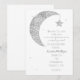 Cartes d'invitation Fête de Bébé Lune et Étoiles Blanc Argent