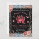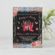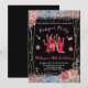 Cartes d'invitation fête de détente pour adolescentes rose/noir pailleté. Invitez toutes vos amies à la fête de détente. Il suffit de modifier les détails avec l'outil d'édition pour l'utiliser. Cette carte a un fond noir avec des motifs floraux pailletés rose et un texte en police Script avec option d'édition. Ce design peut être entièrement personnalisé pour répondre à vos préférences.