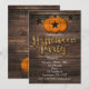 Cartes d'invitation Halloween citrouille en bois rustique & étoiles. Personnalisez pour tout événement.
