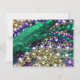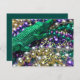 Photographie de lancers de perles colorées de Carnaval. Les couleurs de Mardi Gras (or, vert, violet) sont mises en valeur dans un lancer de perles en forme d'alligator vert encadrant la photo. Le recto de la carte d'invitation indique "Mardi Gras". Le verso des cartes d'invitation comporte la phrase "Laissez les bon temps rouler !" comme salutation et un espace pour ajouter vos détails personnalisés d'invitation de fête de Carnaval. Tous les mots sur la carte peuvent être personnalisés, selon les besoins.