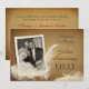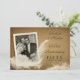 Cartes d'invitation pour fête de 50e anniversaire avec texte de style presse à lettres vintage rétro, fond parchemin antique rustique et accentué d'une plume blanche élégante (partie de l'image - pas une vraie plume), avec encart photo. Téléchargez votre photo et ajoutez les noms, la date et les détails. Veuillez nous contacter pour personnaliser ce style pour d'autres célébrations importantes. Timbres de coordination et cartes de remerciement disponibles sur demande.