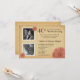 De belles invitations pour une fête d'anniversaire de 40 ans de mariage avec des encarts encadrés pour deux photos sur fond de parchemin doré simulé vintage, des accents de gerbera rustiques et un texte de style rétro. Parfait pour un dîner décontracté et informel, un déjeuner, un cocktail et des fêtes de jardin. Téléchargez vos photos et ajoutez les noms, la date et les détails. Modifiez le texte pour le personnaliser facilement pour d'autres occasions spéciales et célébrations de jalons heureux -- 25e, 30e, 40e, 45e, 60e, 65e, 70e fêtes surprises, mariages, save the date, ou tout événement unique. Taille indiquée : 4,5 x 6,25. Cliquez sur Personnaliser pour modifier la taille, les polices et le choix du papier.