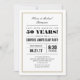Cartes d'invitation pour une fête surprise d'anniversaire de mariage avec un cadre blanc et doré. Personnalisez le texte pour l'utiliser pour n'importe quel anniversaire de mariage.