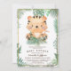 Invitation pour Baby Shower thème Tigre Super Mignonne – Préparez-vous car un petit tigre arrive bientôt. Commencez vos célébrations de la bonne façon avec notre invitation pour Baby Shower thème Tigre “roar-some” très mignonne. Avec un petit bébé tigre féroce entouré de feuilles fraîches de jungle tropicale verte. Le dos de la carte a une texture de carton faux avec un motif subtil de feuilles vertes. Juste parfait pour une invitation pour Baby Shower garçon. Allez les tigres ! Rugissement !