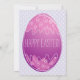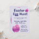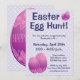 Cartes d'invitation pour chasse aux œufs de Pâques pour enfants. Invitations personnalisées pour Pâques et anniversaires d'enfants. Texte d'annonce et couleur de fond personnalisables. Fond rose pastel girly avec motif à pois blancs. Modèle de fête pour enfants.
