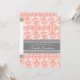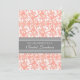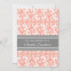 Invitations nuptiales au déjeuner dans l'élégante pêche rose orange, gris et blanc classique damas fleuris vintage motif, chic et féminin, personnalisable avec vos détails de douche. Également disponible en cartes de remerciement et invitations pour la fête de mariage.