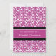 Des invitations nuptiales au déjeuner dans d'élégantes couleurs fuchsia rose chaud, noir et blanc classique damas floral vintage motif, chic et féminin, personnalisable avec vos détails de douche. Également disponible en cartes de remerciement et invitations pour la fête de mariage.